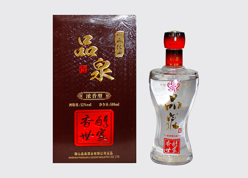 品泉為濃香型白酒,以小麥、大米、玉米、高粱、糯米5種糧食發(fā)酵釀制而成, 承襲百年純熟釀酒工藝,原始洞藏,香氣濃郁,滋味醇厚,入口甜、落口綿、尾凈余長恰到好處。